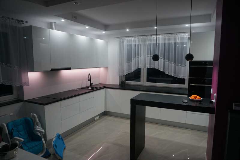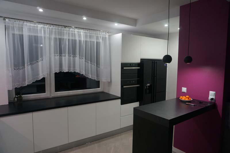 Oto nasza kuchnia, jeszcze pójdzie pod szafki biała szyba z owockami, no i zabudujemy tą spirorurę z mdfu.